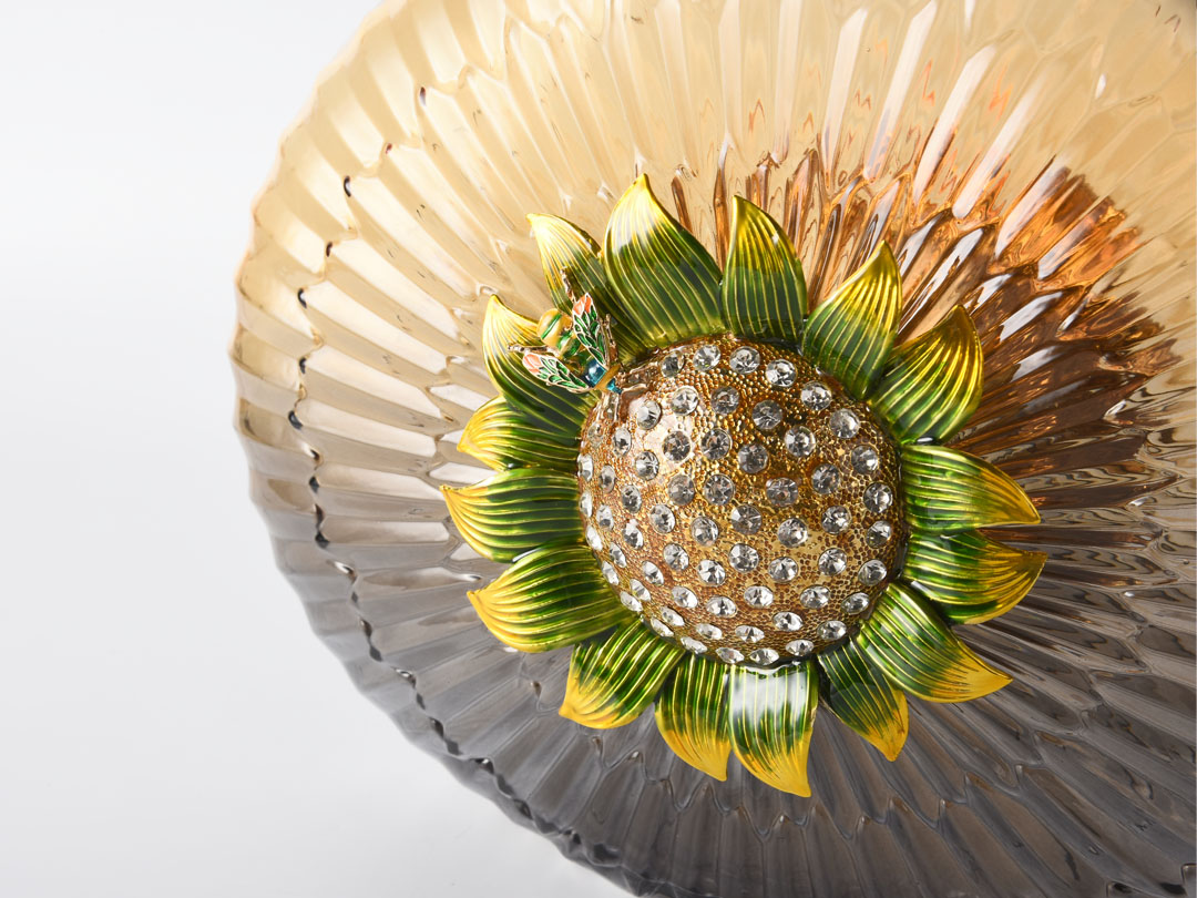 U kunt er zeker van zijn dat u Rundecor Elliptical Amber Glass Vase Decor in onze fabriek koopt. De producten worden landelijk algemeen erkend vanwege hun betrouwbaarheid en uitstekende kwaliteit, en geëxporteerd naar Europa, de Verenigde Staten, Afrika en Australië met het oog op de toekomst, zal het bedrijf blijven verbeteren en uitbreiden. De klassieke XO-wijnflesvorm, als glazen vaasdecor, het hoofdlichaam met het verloop van champagnegoud naar roet, dat hoogwaardig en duurzaam is. Het oppervlak is gemaakt door handimitatietechniek en de lineaire textuur die vanuit het midden naar buiten straalt, is ingenieus ontworpen om het Elliptical Amber Glass Vase Decor een overvloedig driedimensionaal visueel gevoel te geven. In het midden een grote bloeiende zonnebloem, afgewisseld met gouden bijen. Het is niet alleen weelderig, maar ook stralend en betoverend onder het dubbele vakmanschap van met de hand beschilderd email en diamanten inleg. Er zijn twee formaten, groot en klein, die in de woonkamer, salontafel, bijzettafel, bloemenstandaard, tv-kast, dressoir en eetkamer kunnen worden geplaatst. Als decoratief ornament, een artistiek ornament om de sfeer aan te passen, kun je ook het geluk en de warmte van de natuur voelen.